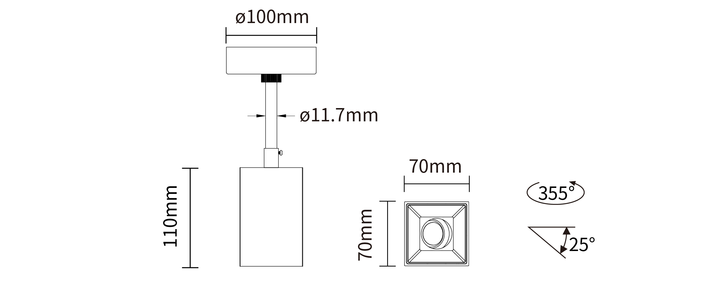 - 灯具类型:吊装方形可调筒灯