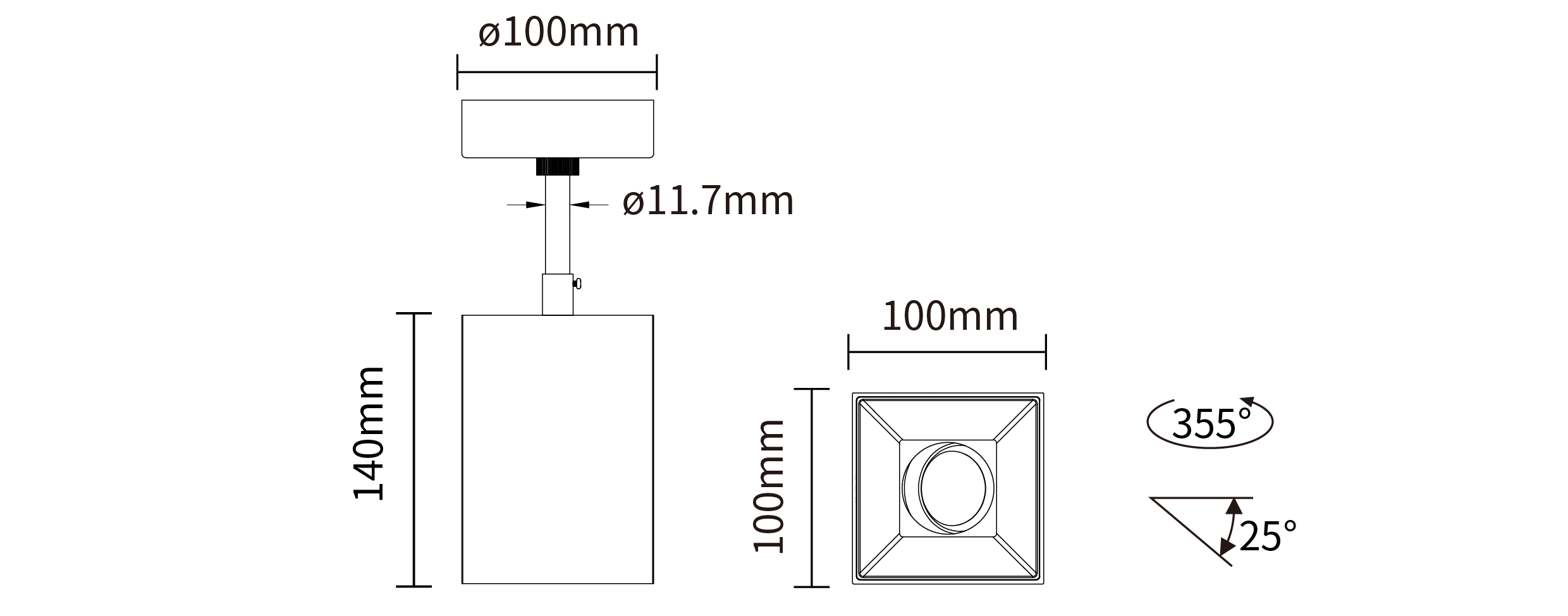 - 灯具类型:吊装方形可调筒灯