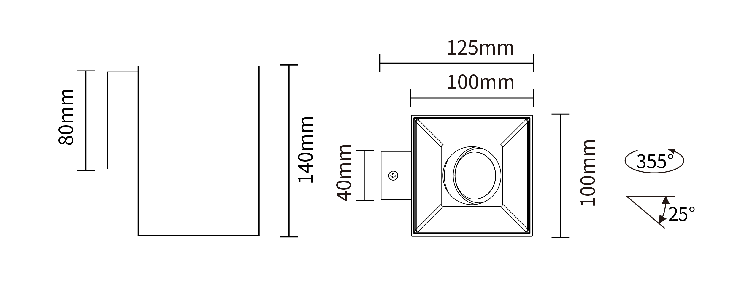 - 灯具类型:壁装方形可调筒灯