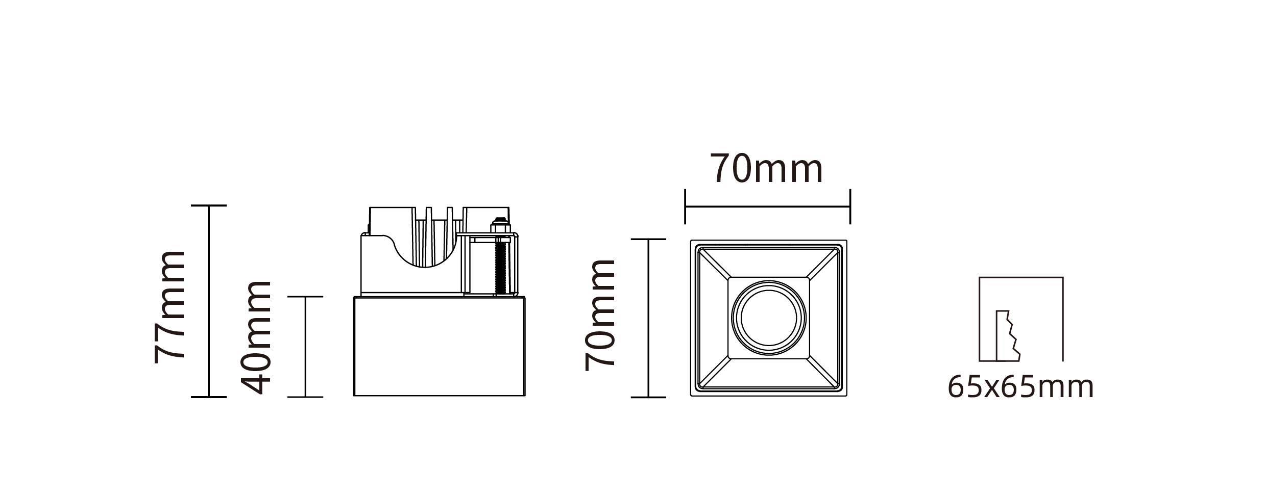 - 开孔尺寸:65x65 mm