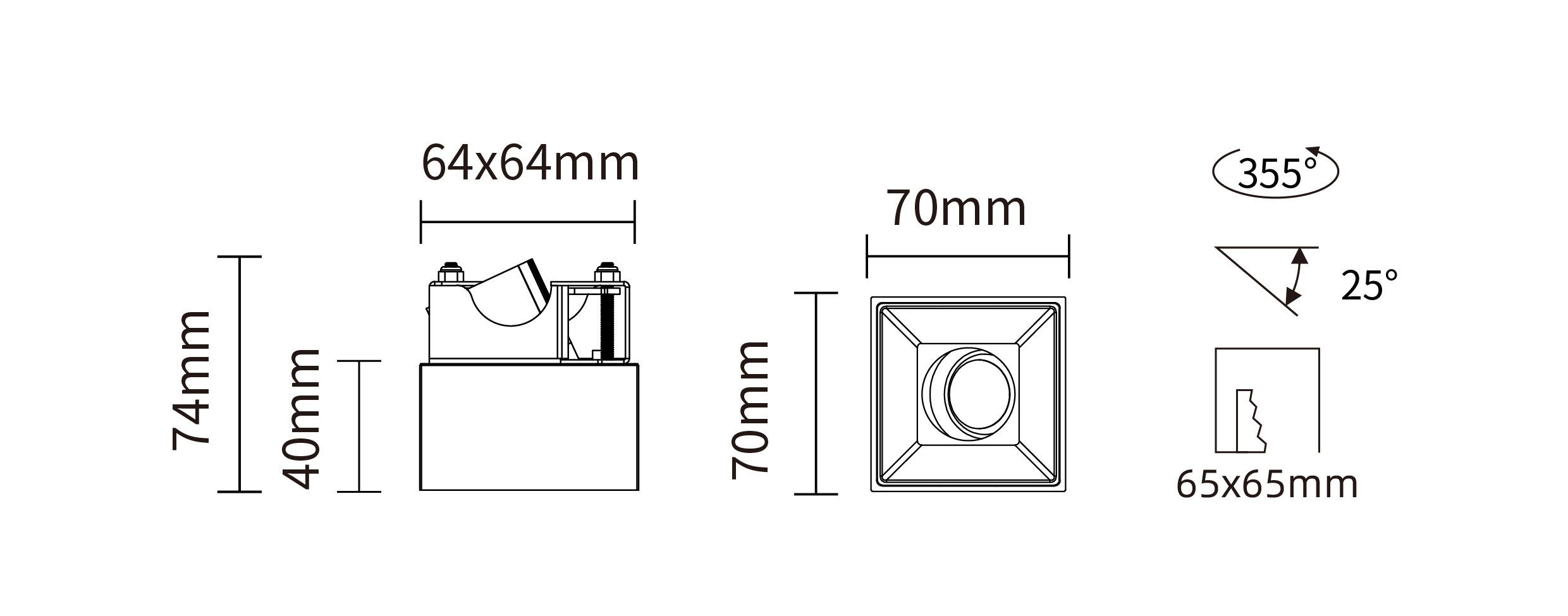 - 灯具类型:半嵌入式方形可调筒灯