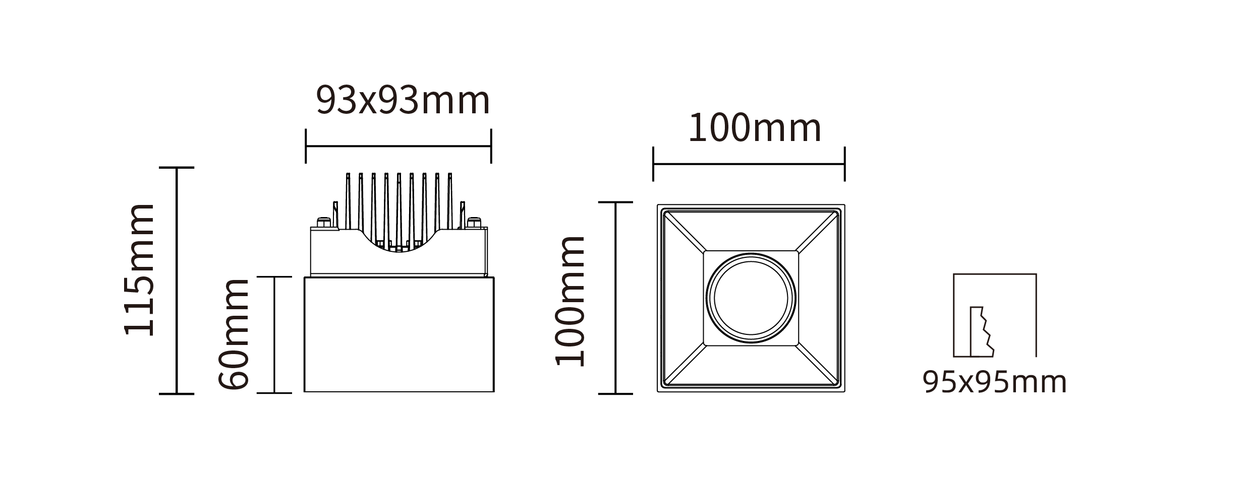 - 开孔尺寸:95x95 mm
