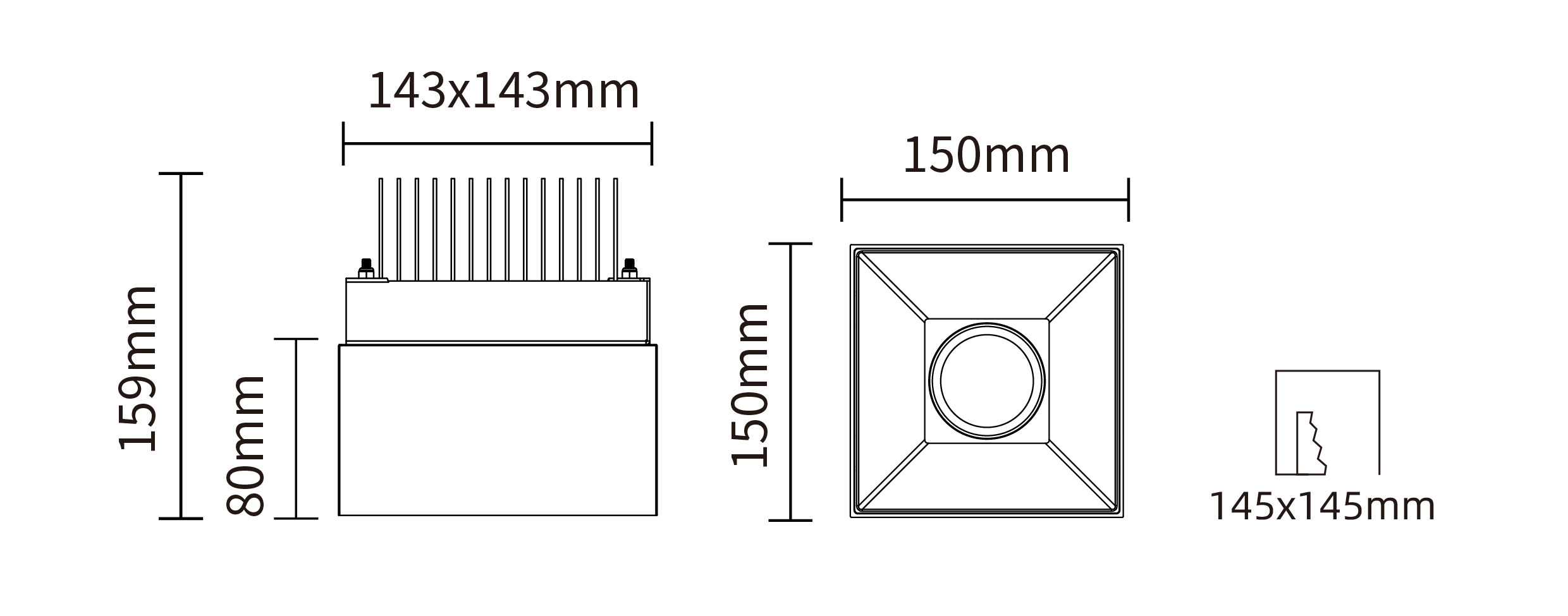 - 开孔尺寸:145x145 mm