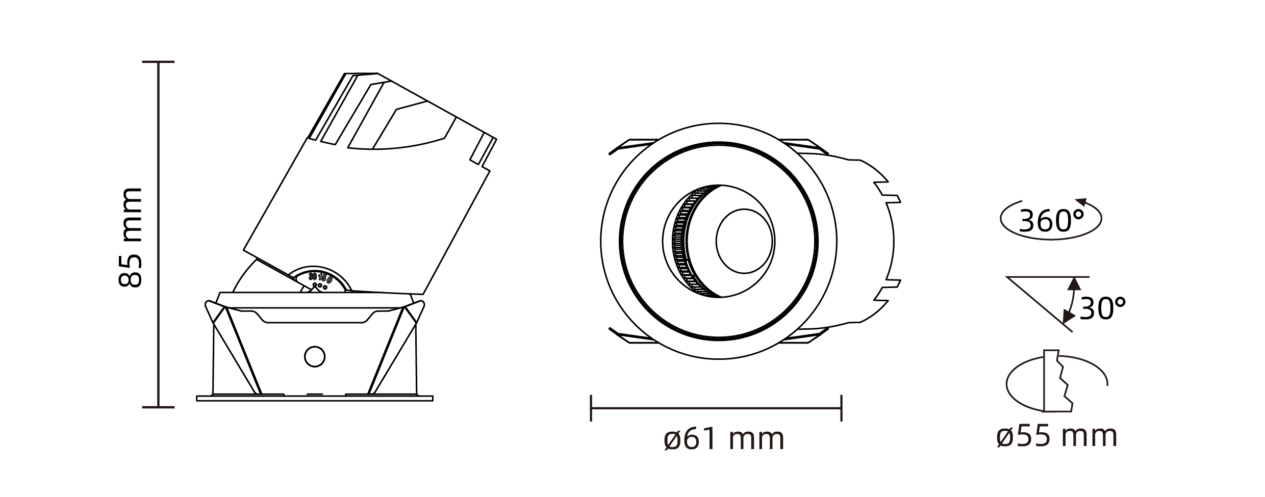 - 开孔尺寸:ø 55 mm