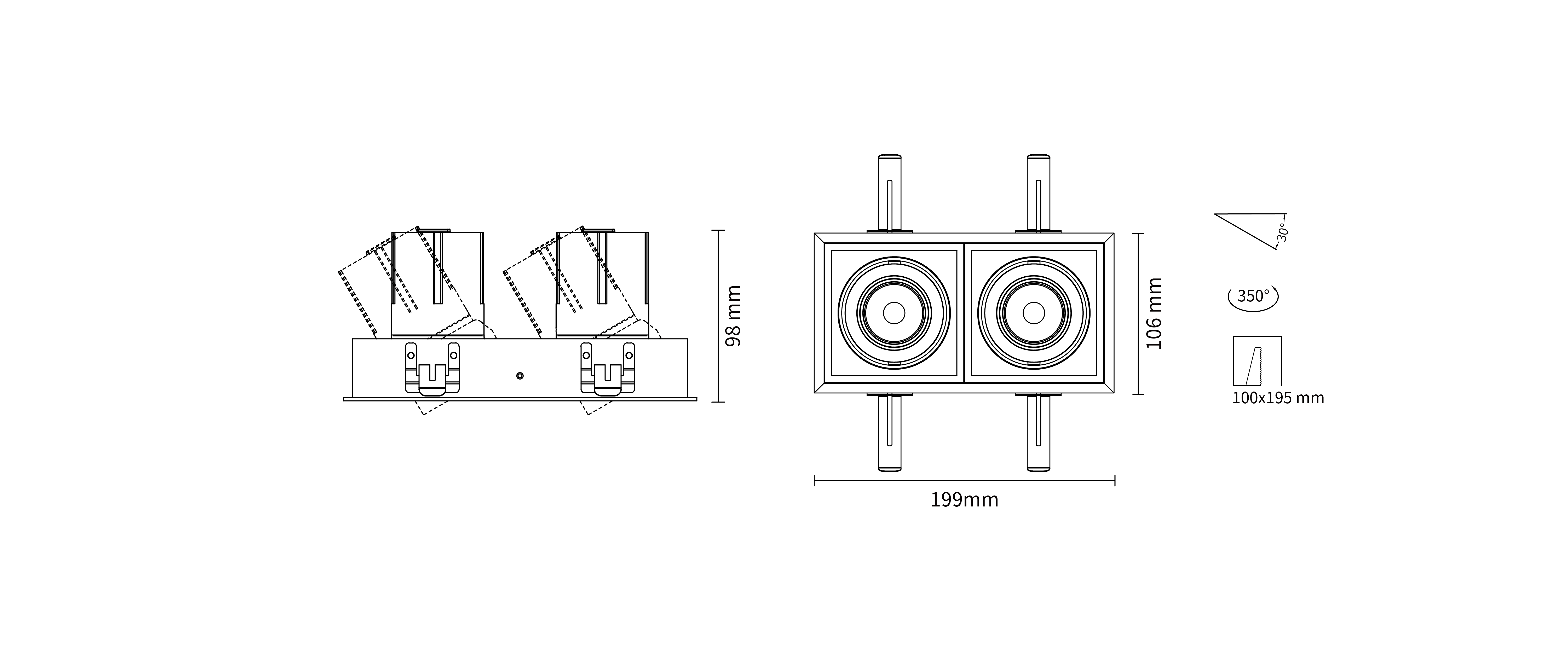 结构设计配有水平350°旋转,垂直30°偏光,加上配有极窄的光束角度(8D 和15D), 可以从不同角度精准的照射到被照物。另外,严谨的设计使此款灯有光源模组可替换性,使用者不借助任何工具可轻松替换。
