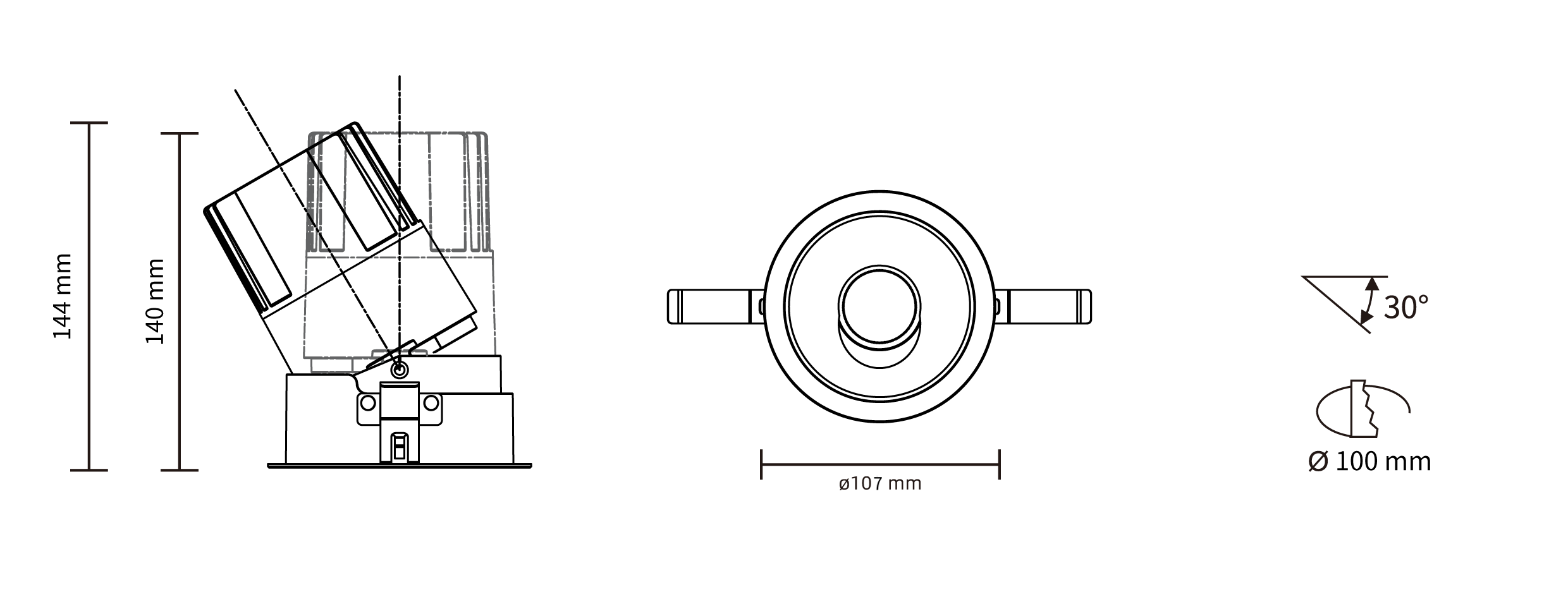 - 开孔尺寸:ø 100 mm
