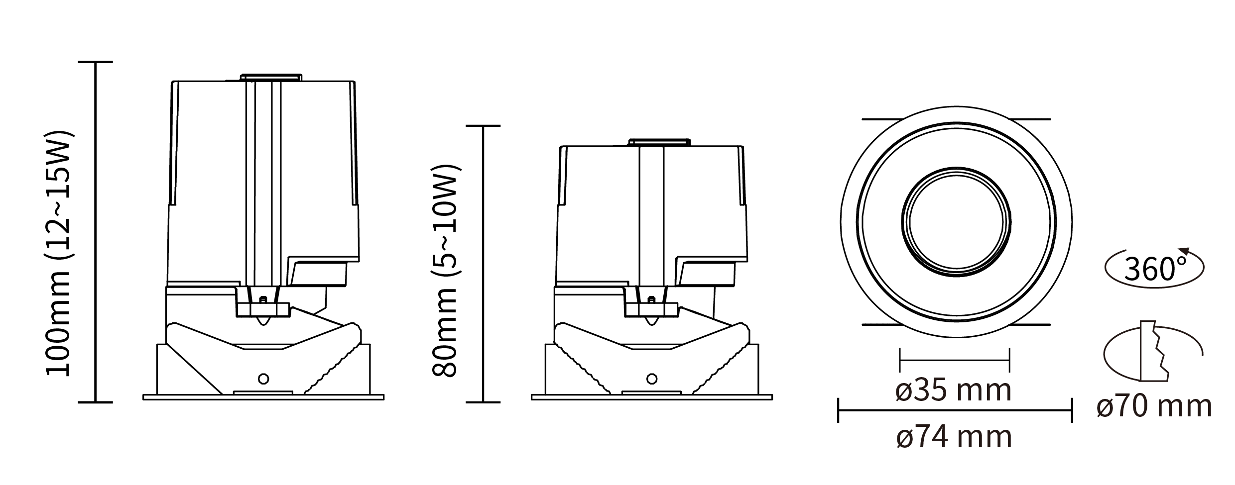 - 灯具类型:嵌入式圆形圆孔直射筒灯