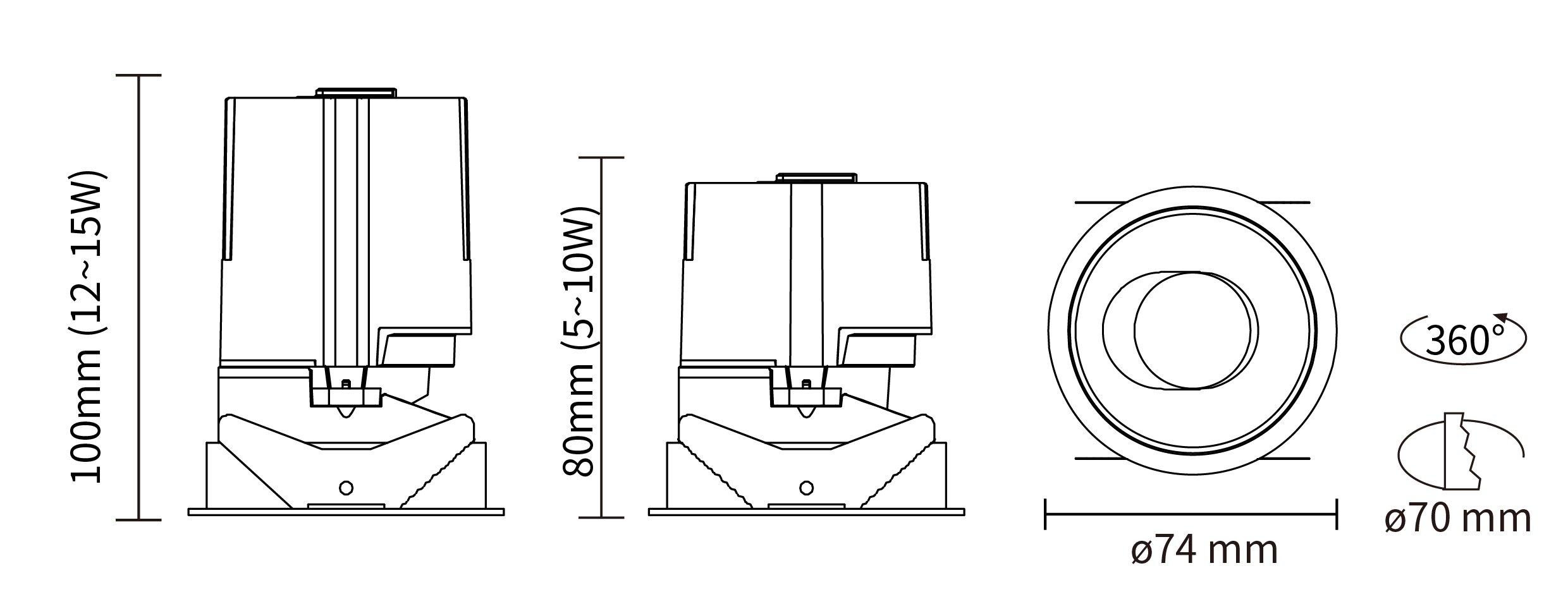 - 开孔尺寸:ø 70 mm