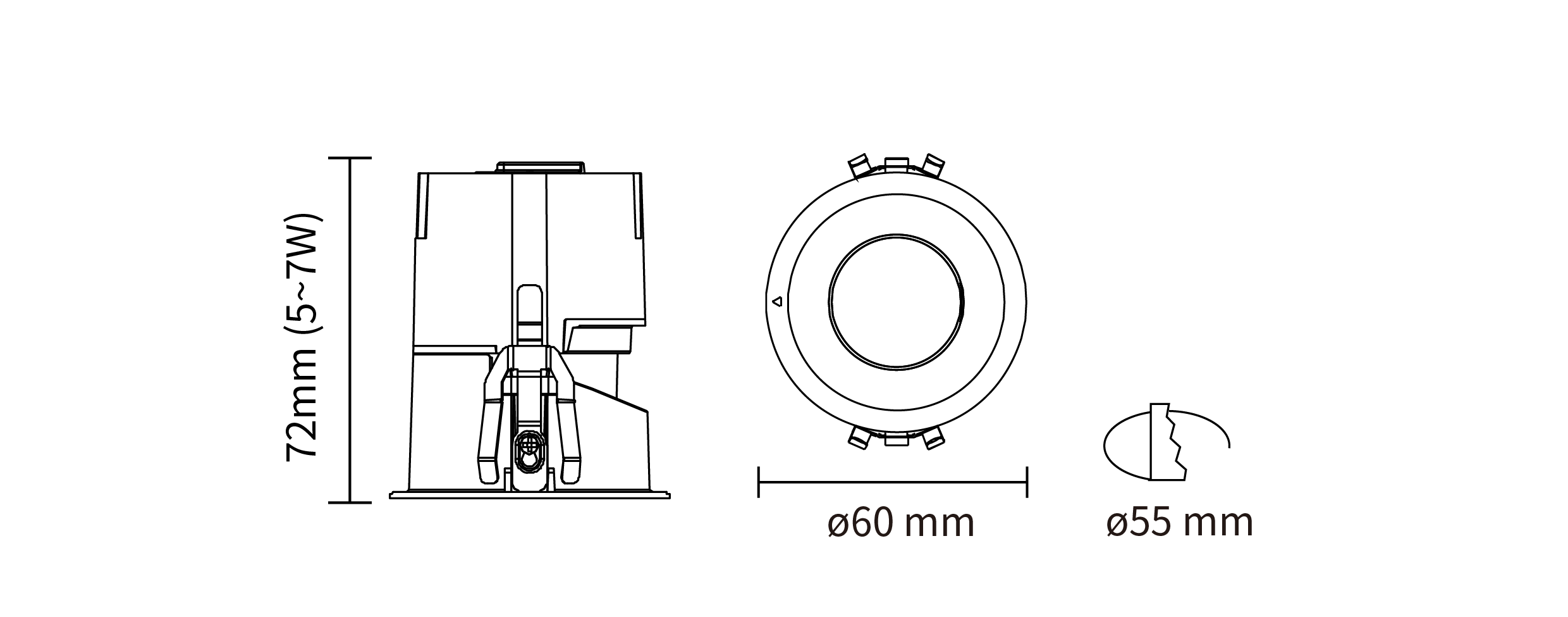 - 开孔尺寸:ø 55 mm