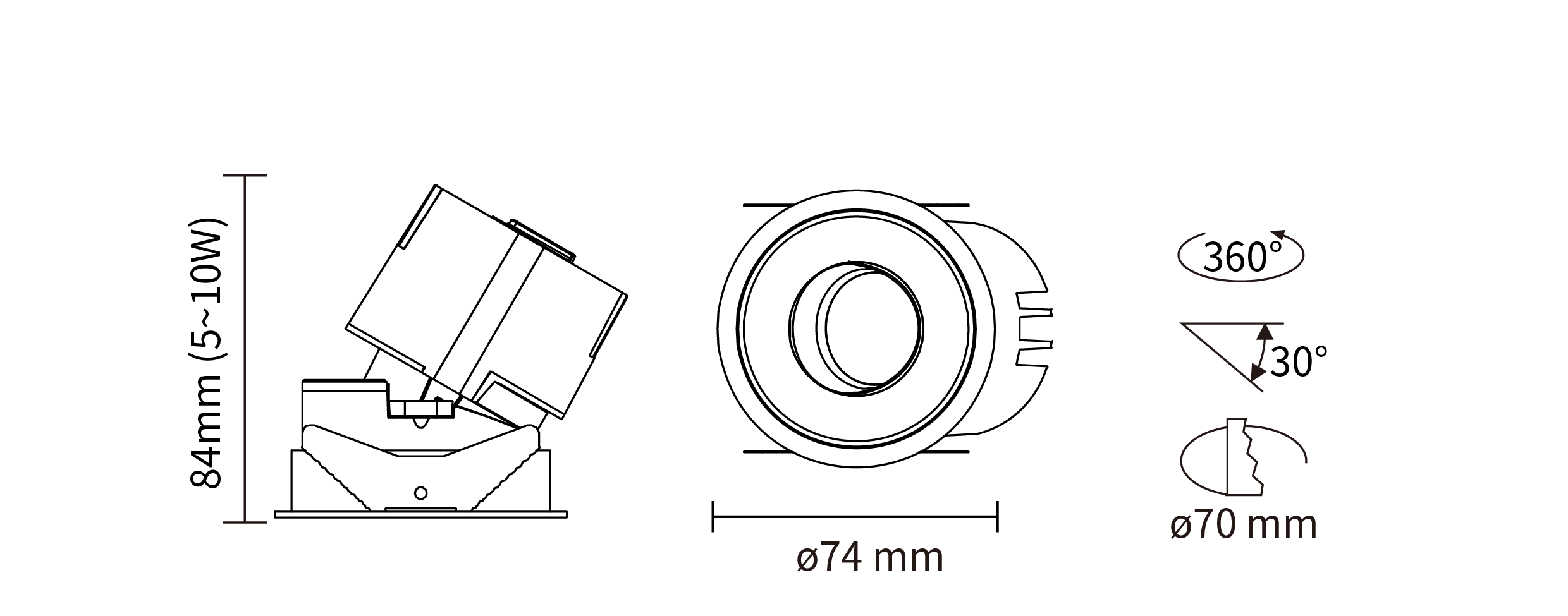 - 灯具类型:嵌入式圆形有边旋转可调筒灯