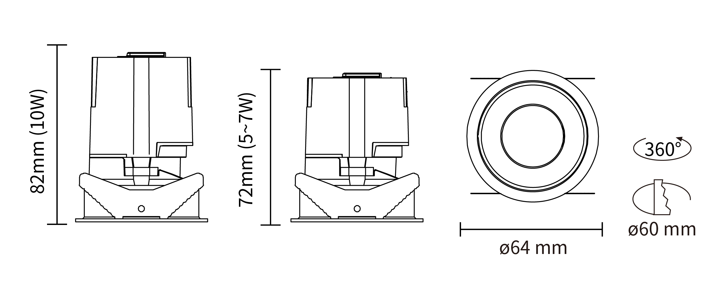 - 开孔尺寸:ø 60 mm