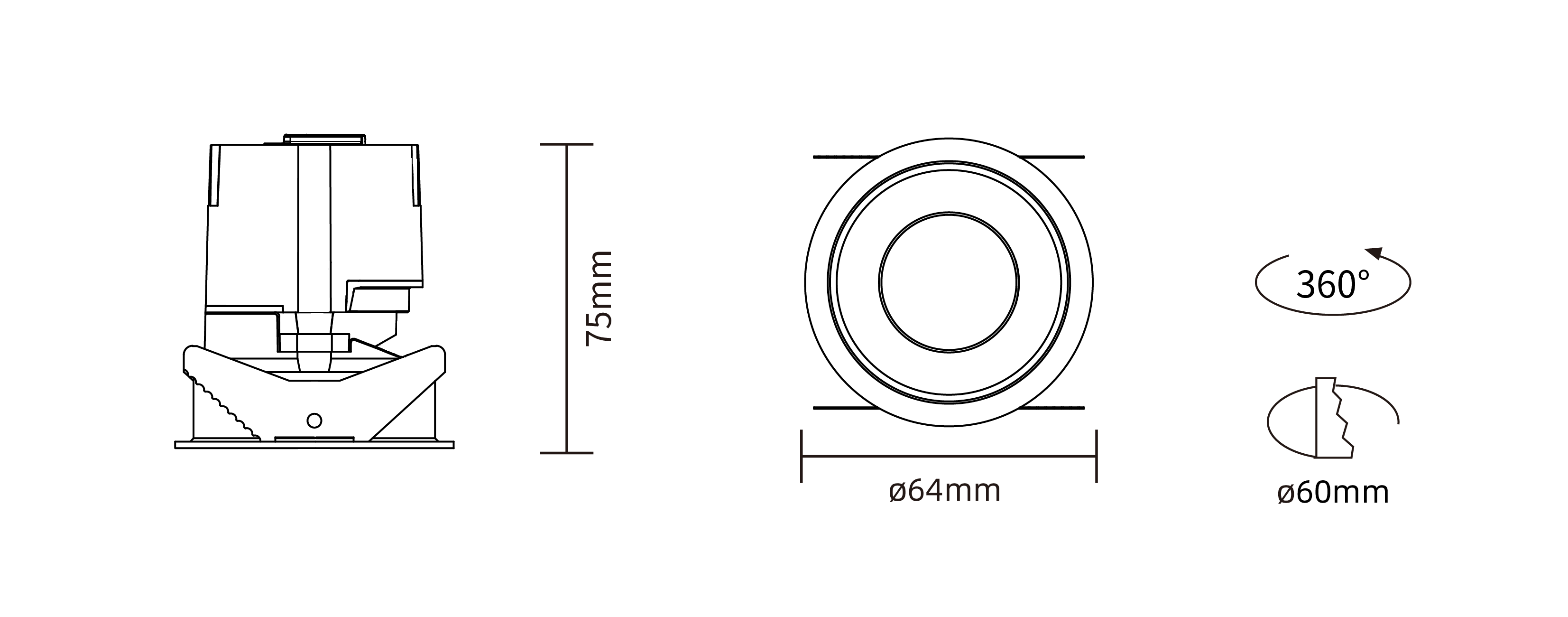 - 灯具类型:嵌入式圆形有边旋转直射美颜灯