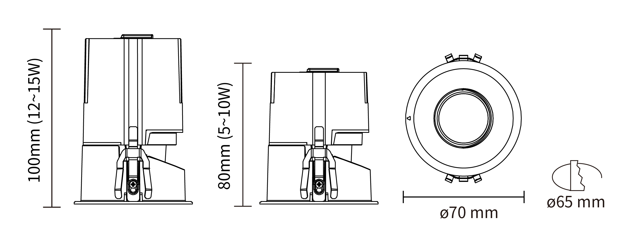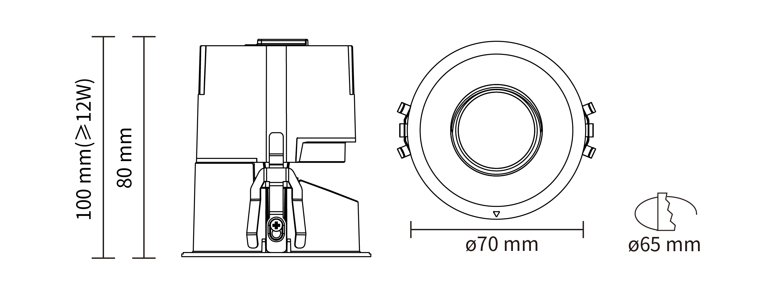 - 开孔尺寸:ø 65 mm