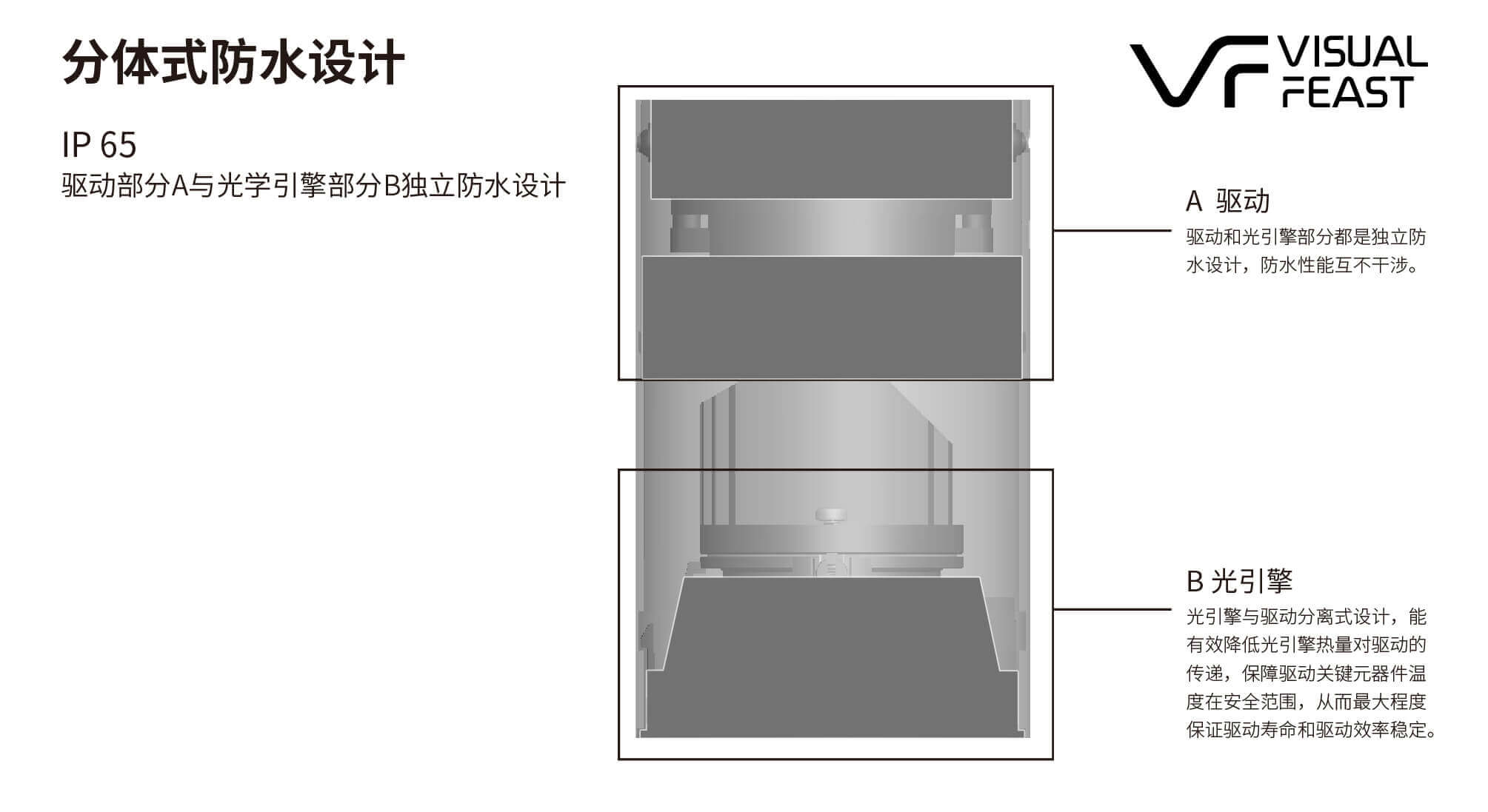驱动、光引擎分体设计,均可达到IP65,POYO整个系列完美适用于机场、高铁站、户外雨棚、会议会展中心等室内外场所。
