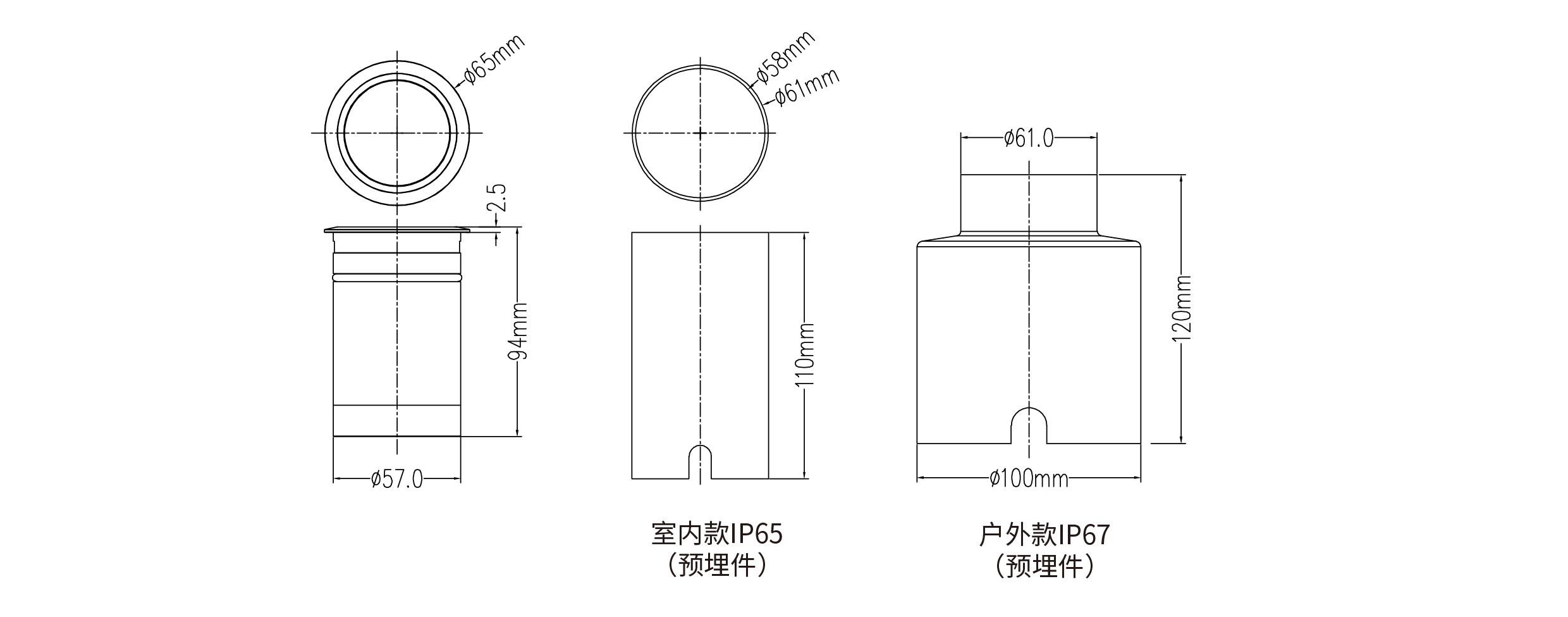- 预埋件尺寸:φ61x110mm/φ100x120mm